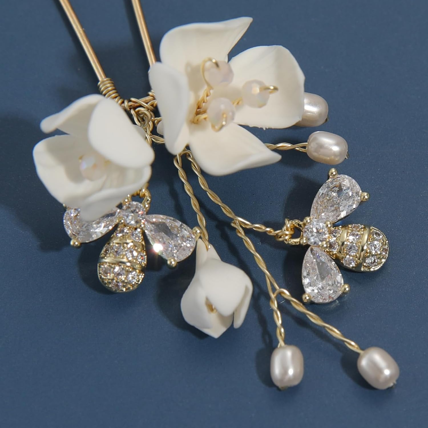 - ❀These wedding hair pins are made of polymer clay, pearl, zircon and metal alloy, soft alloy wire, 100% handmade and well crafted, lightweight and delicate with smooth surface. Vintage style makes bridal hair pins look exquisite and attractive, and can also give your hair more charm.
