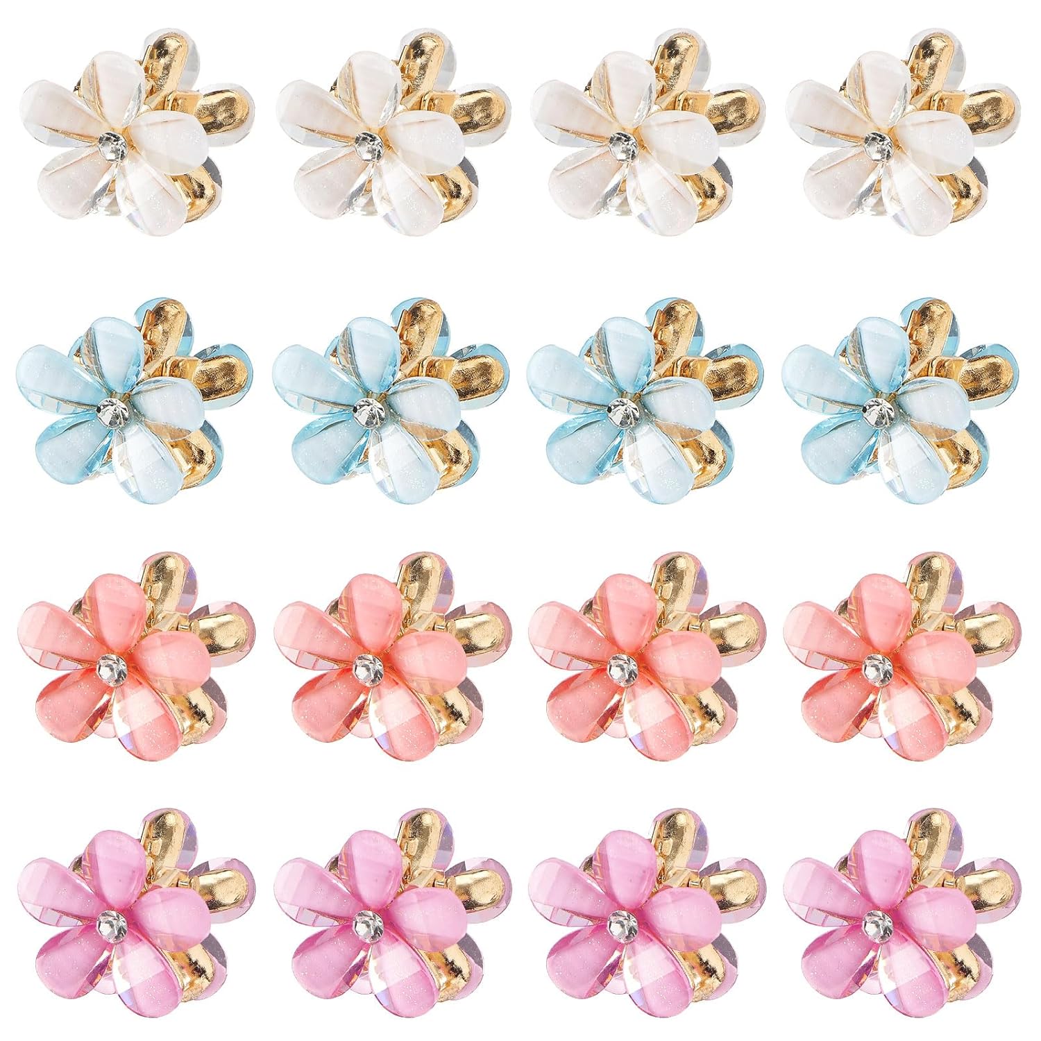 Small Flower Hair Clips for Women 16PCS Colourful Mini Crystal Flower Claw Clips for Thin/Thick Curly Hair Non Slip Bangs Pins(16PCS-Style 7)