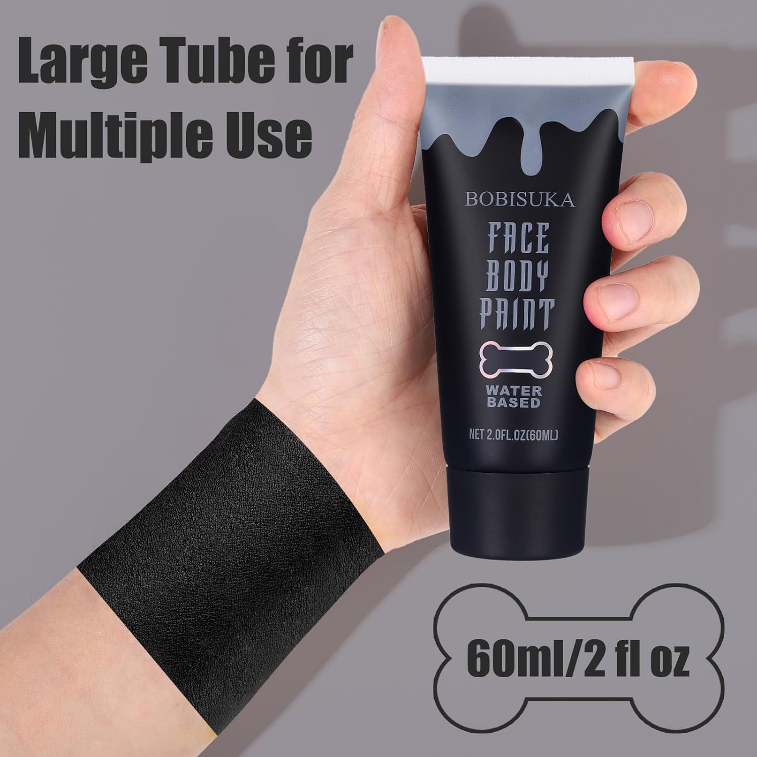 BOBISUKA Black Face Body Paint, Water Based Face Painting for Art Theater Halloween Party Cosplay Clown SFX Makeup for Women Adults, Non-Toxic Washable