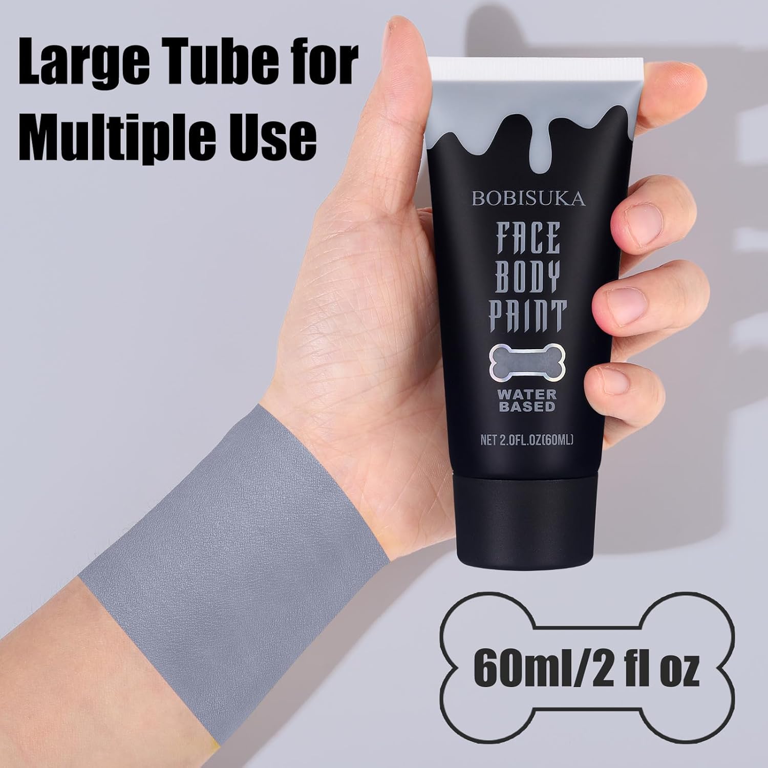 BOBISUKA Grey Face Body Paint, Water Based Face Painting for Art Theater Halloween Party Cosplay Clown SFX Makeup for Women Adults, Non-Toxic Washable