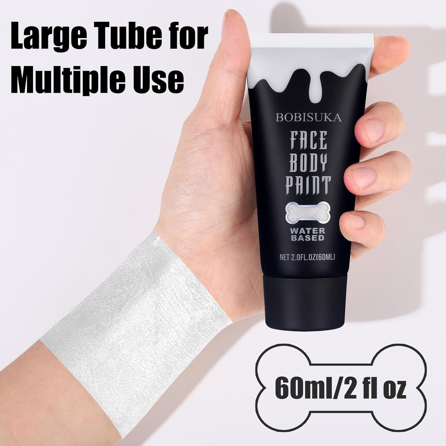 BOBISUKA Silver Face Body Paint, Water Based Face Painting for Art Theater Halloween Party Cosplay Clown SFX Makeup for Women Adults, Non-Toxic Washable