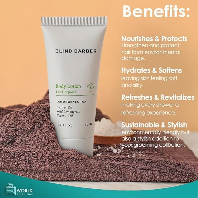- BULK SUPPLY - This value pack includes 300 tubes of Blind Barber's body lotion, each featuring a convenient flip top cap. Perfect for the hospitality industry, office space, or home use.