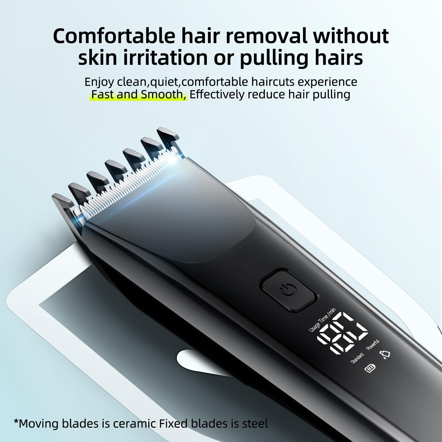 Hair Clippers for Men and Kids Adjustable Length Trimmer Haircut Professional Haircuts Tool Grooming 6 Kit LED Screen Display Fast Charge for Family Black