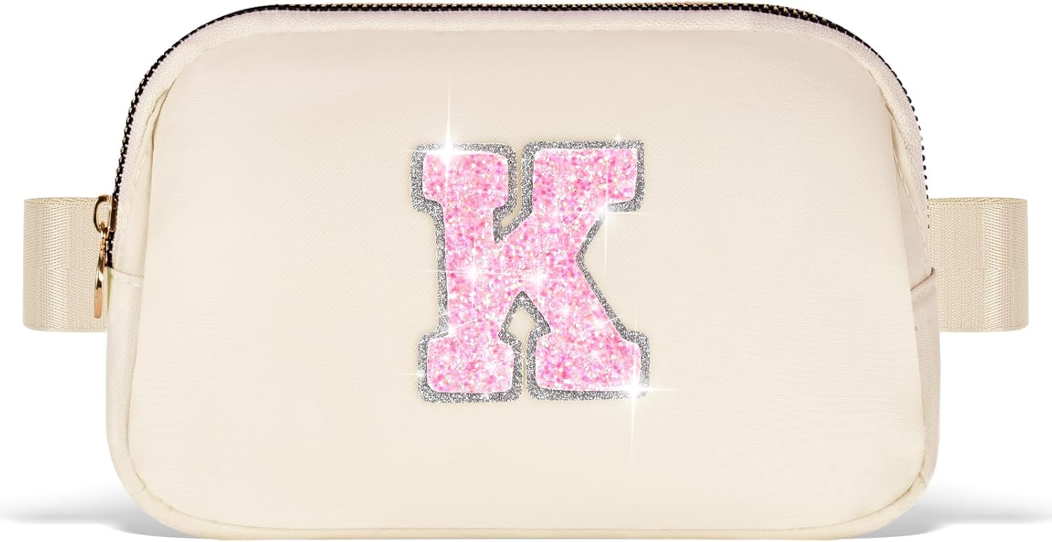 Fanny Pack Belt Bag Crossbody Bags with Initials Letter Patch Trendy Stuff for Teens Cute Stuff Birthday Gifts for Teenager Girls | Khaki,Initial K