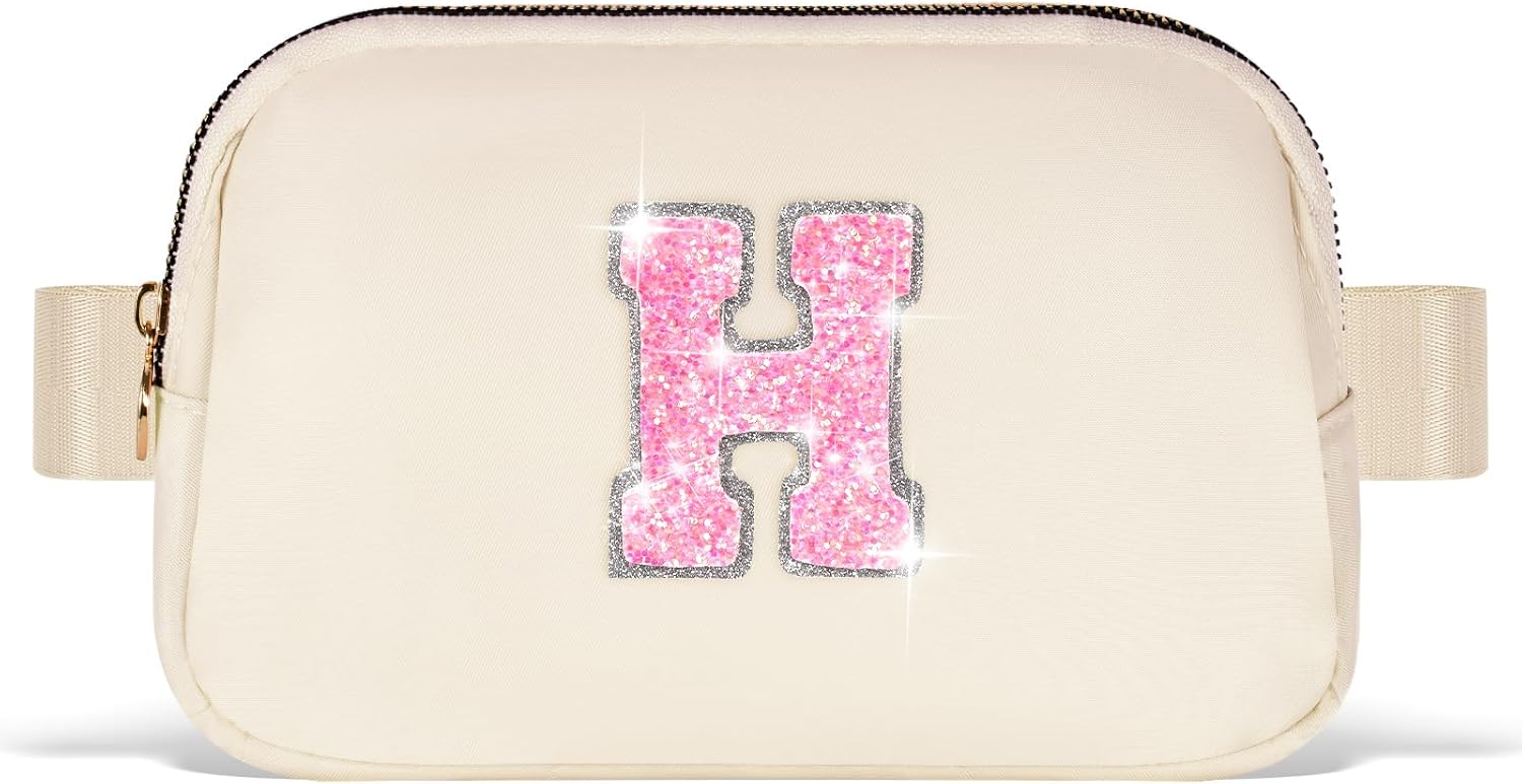 Fanny Pack Belt Bag Crossbody Bags with Initials Letter Patch Trendy Stuff for Teens Cute Stuff Birthday Gifts for Teenager Girls | Khaki,Initial H