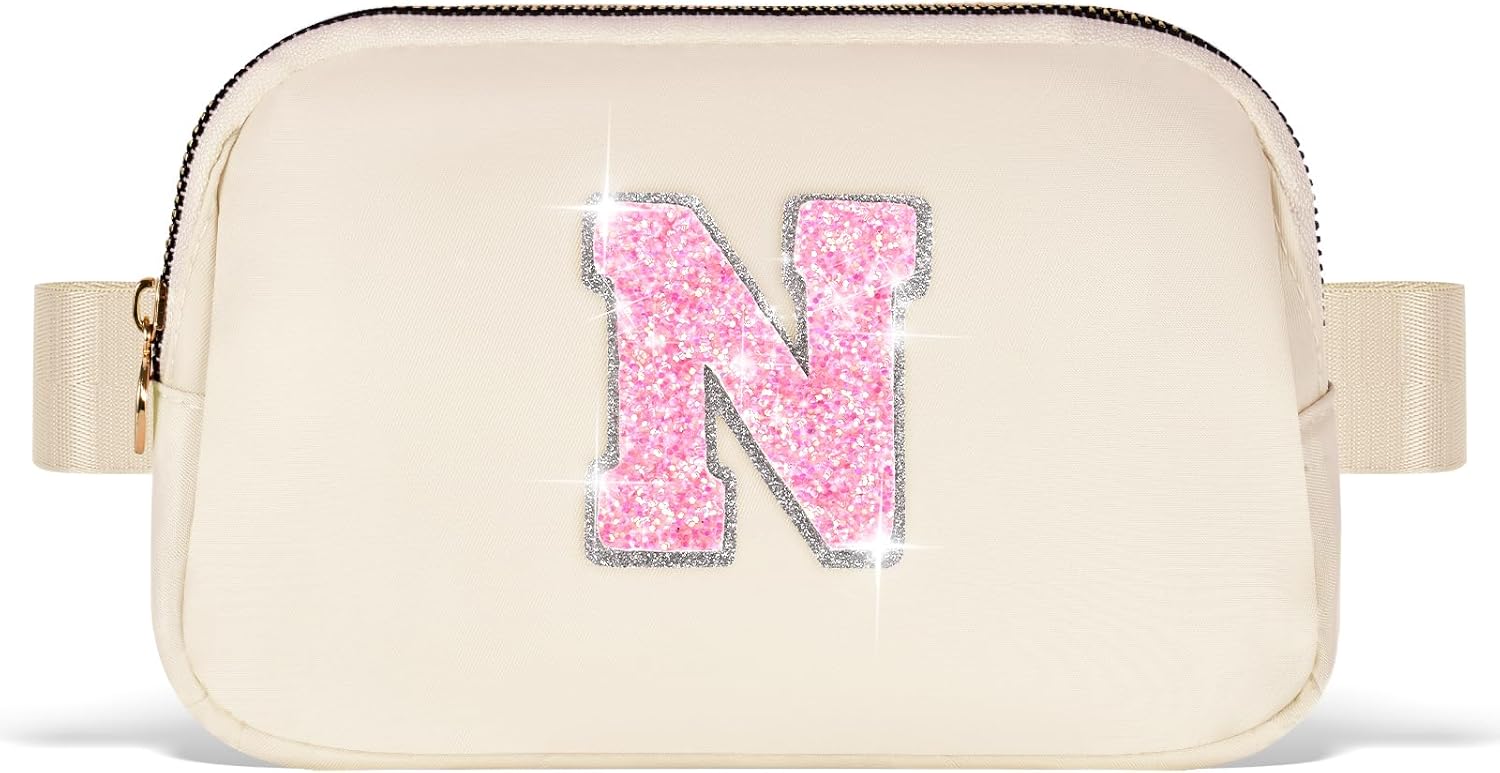Fanny Pack Belt Bag Crossbody Bags with Initials Letter Patch Trendy Stuff for Teens Cute Stuff Birthday Gifts for Teenager Girls | Khaki,Initial N
