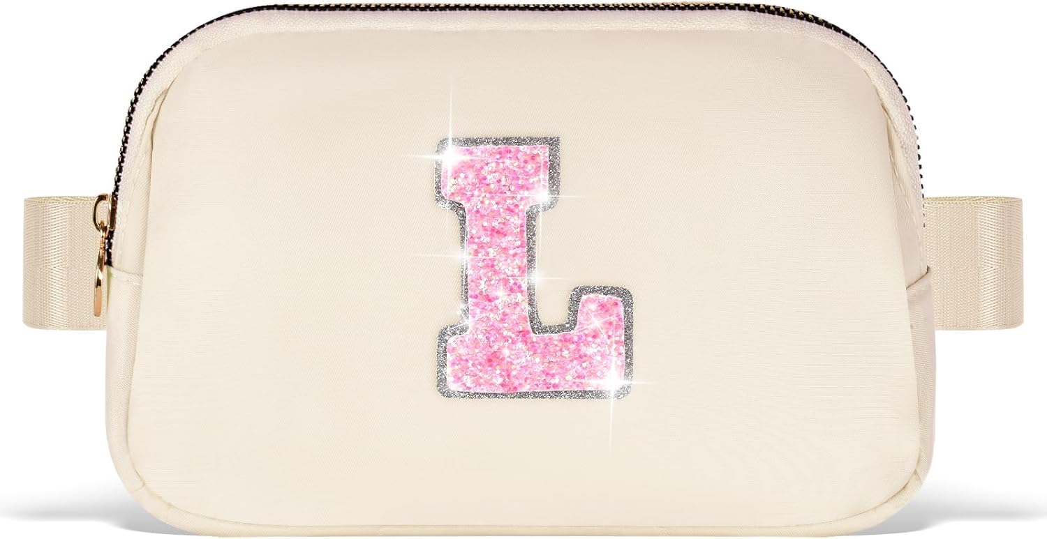 Fanny Pack Belt Bag Crossbody Bags with Initials Letter Patch Trendy Stuff for Teens Cute Stuff Birthday Gifts for Teenager Girls | Khaki,Initial L