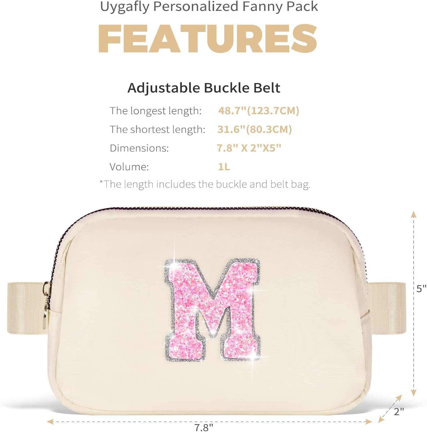- HIGH QUALITY MATERIAL: Made of waterproof nylon material,but please do not immerse it in water.This fanny bag is designed with a round metal zipper head and personalized initials for a stylish and elegant look