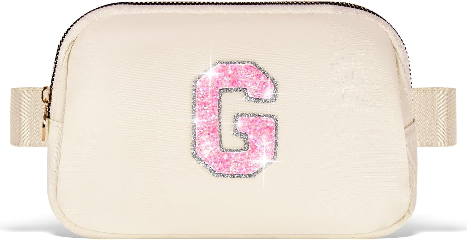 Fanny Pack Belt Bag Crossbody Bags with Initials Letter Patch Trendy Stuff for Teens Cute Stuff Birthday Gifts for Teenager Girls | Khaki,Initial G