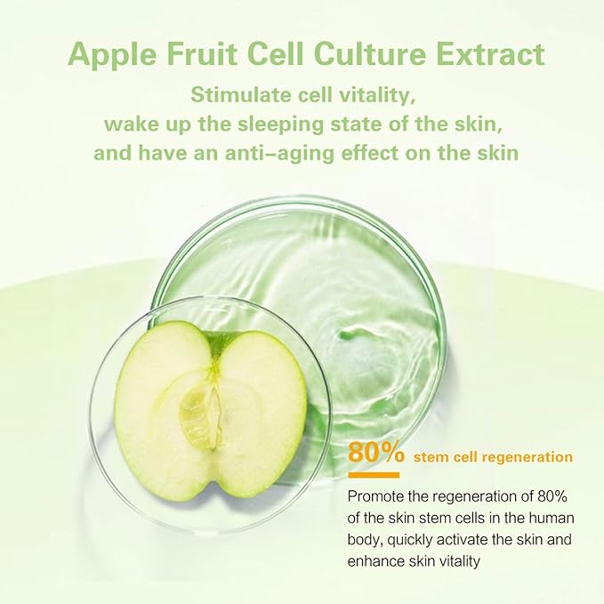 - Green Apple Cell and 24K Gold Essence: Enriched with a unique blend of green apple cell extract and luxurious 24K gold essence, our face serum deeply nourishes and revitalizes your skin for a more vibrant complexion