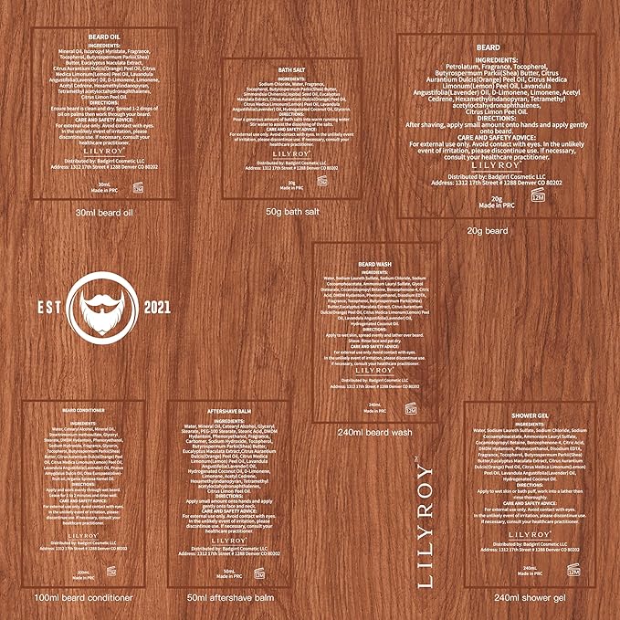 - 12PCS SPA GIFT BASKET: 240 ml Shower Gel, 240 ml Beard Wash, 100 ml Beard Conditioner, 30 ml Beard Oil, 50 ml Aftershave Balm, 20 g Beard Cream, 50 g Bath Salt, Beard Brush, Beard Comb, 19 pcs Nail Care Tools, Wooden Massager, packaged in a nice beautiful Luxury Travel Bag. The spa gift baskets for men offer the most luxurious and perfect bath experience