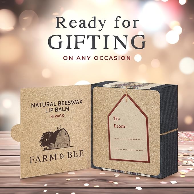 Natural Lip Balm – 4 Pack Gifts for Women & Men - Organic & Natural Ingredients - Moisturizing Lip Care Chapstick - Great Gift Idea for Adults, Women, Men, Teens, and Kids - 0.15oz (Pack of 4)