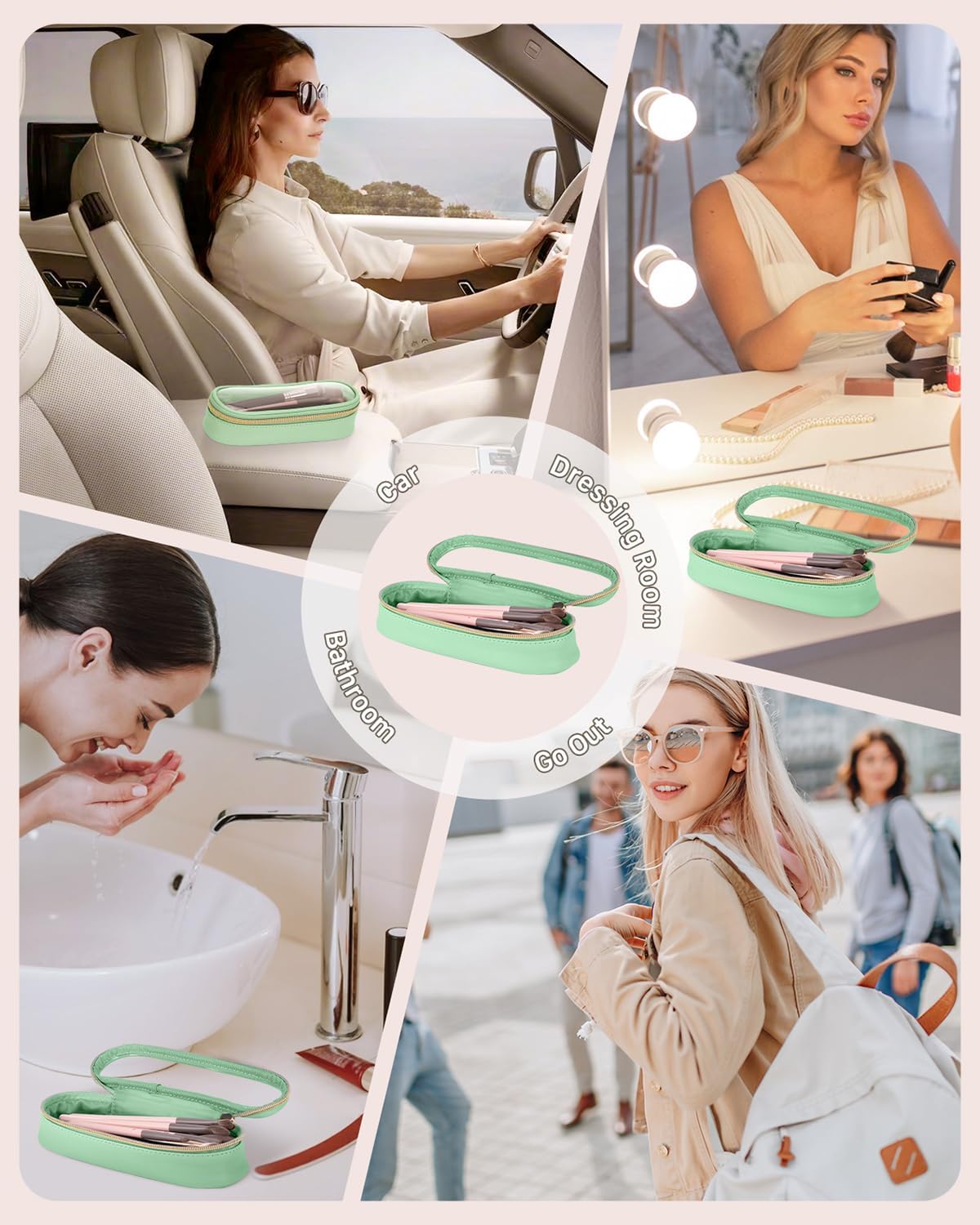 Clear Travel Makeup Brush Holder, Leather Makeup Brush Toiletry Bag, Portable Cosmetic Brush Case, Transparent Waterproof Makeup Brush Storage Bag, Mint Green