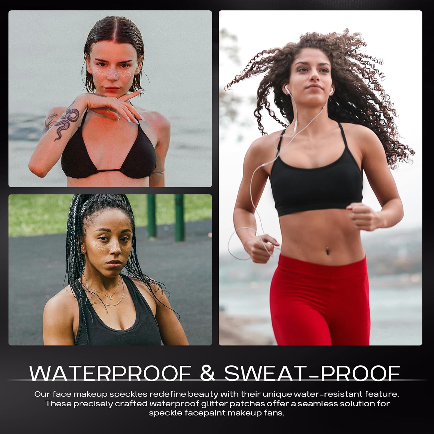- WATER-PROOF AND SWEAT-PROOF:they can stayed on through at least three days of running, sweating, swimming, lake life, showering, tanning, etc!