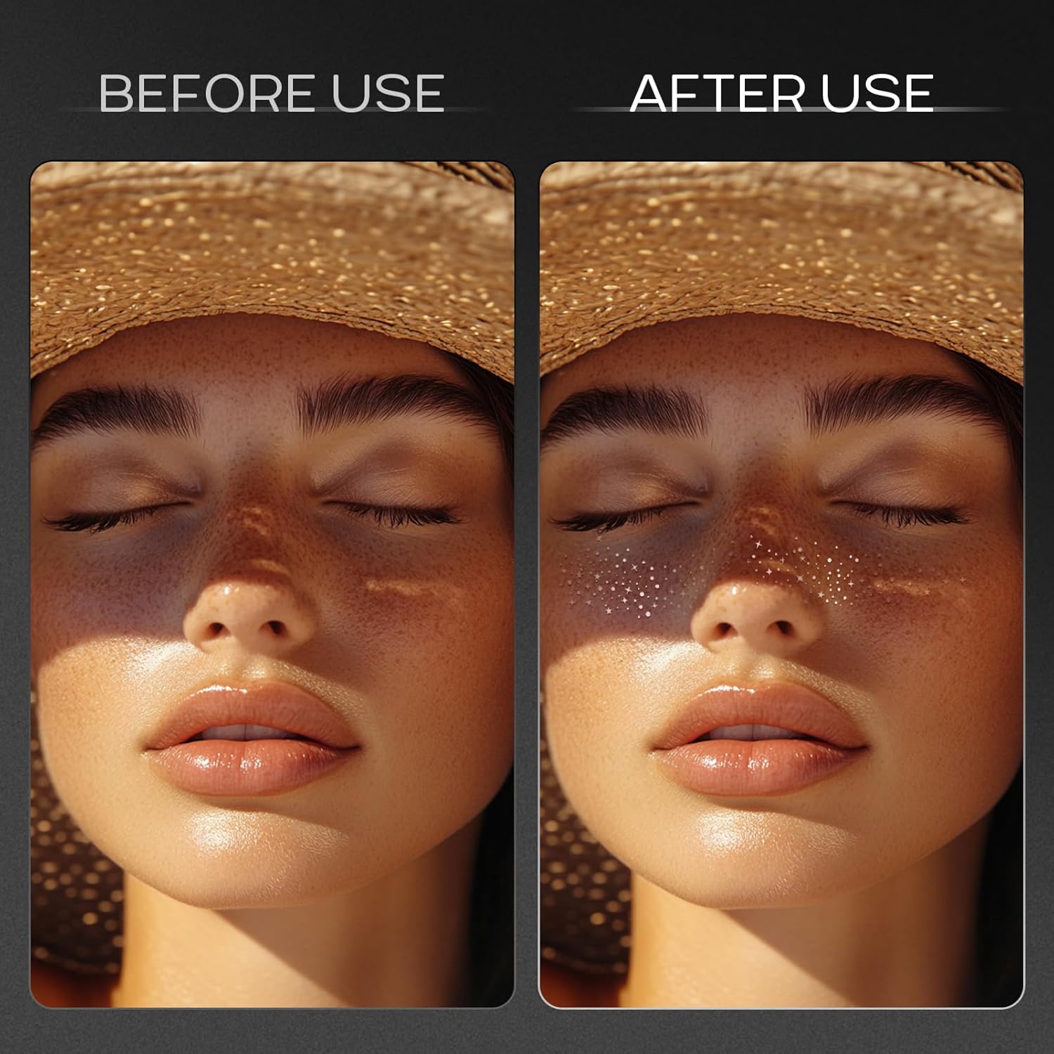 - SPARKLE SIVLER GLITTER FRECKLES: The cutest little sparkly star freckles adds a fun subtle sparkle to their outfits without looking cheesy.The glitter touch elevates their looks and adds fun to their makeup.They look good without any makeup on, or on top of makeup,these are so fun and cute for both adult and kids faces