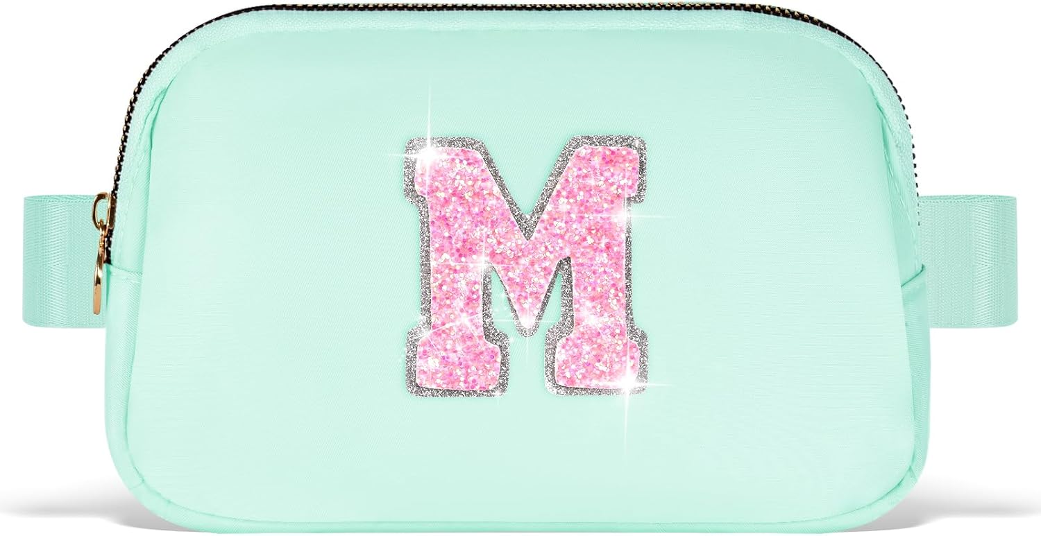 Fanny Pack Belt Bag Crossbody Bags with Initials Letter Patch Trendy Stuff for Teens Cute Stuff Birthday Gifts for Teenager Girls | Light Green,Initial M