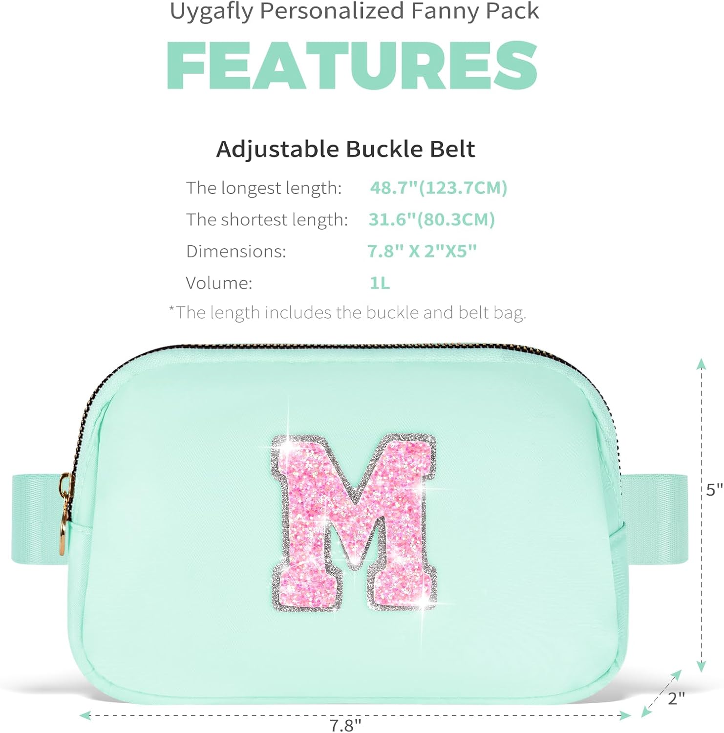 - HIGH QUALITY MATERIAL: Made of waterproof nylon material,but please do not immerse it in water.This fanny bag is designed with a round metal zipper head and personalized initials for a stylish and elegant look