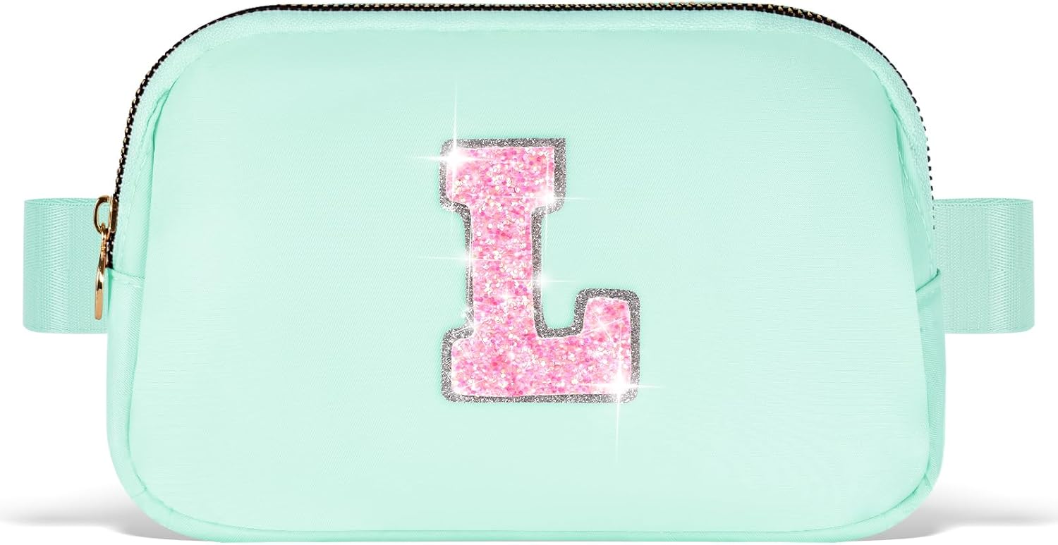 Fanny Pack Belt Bag Crossbody Bags with Initials Letter Patch Trendy Stuff for Teens Cute Stuff Birthday Gifts for Teenager Girls | Light Green,Initial L
