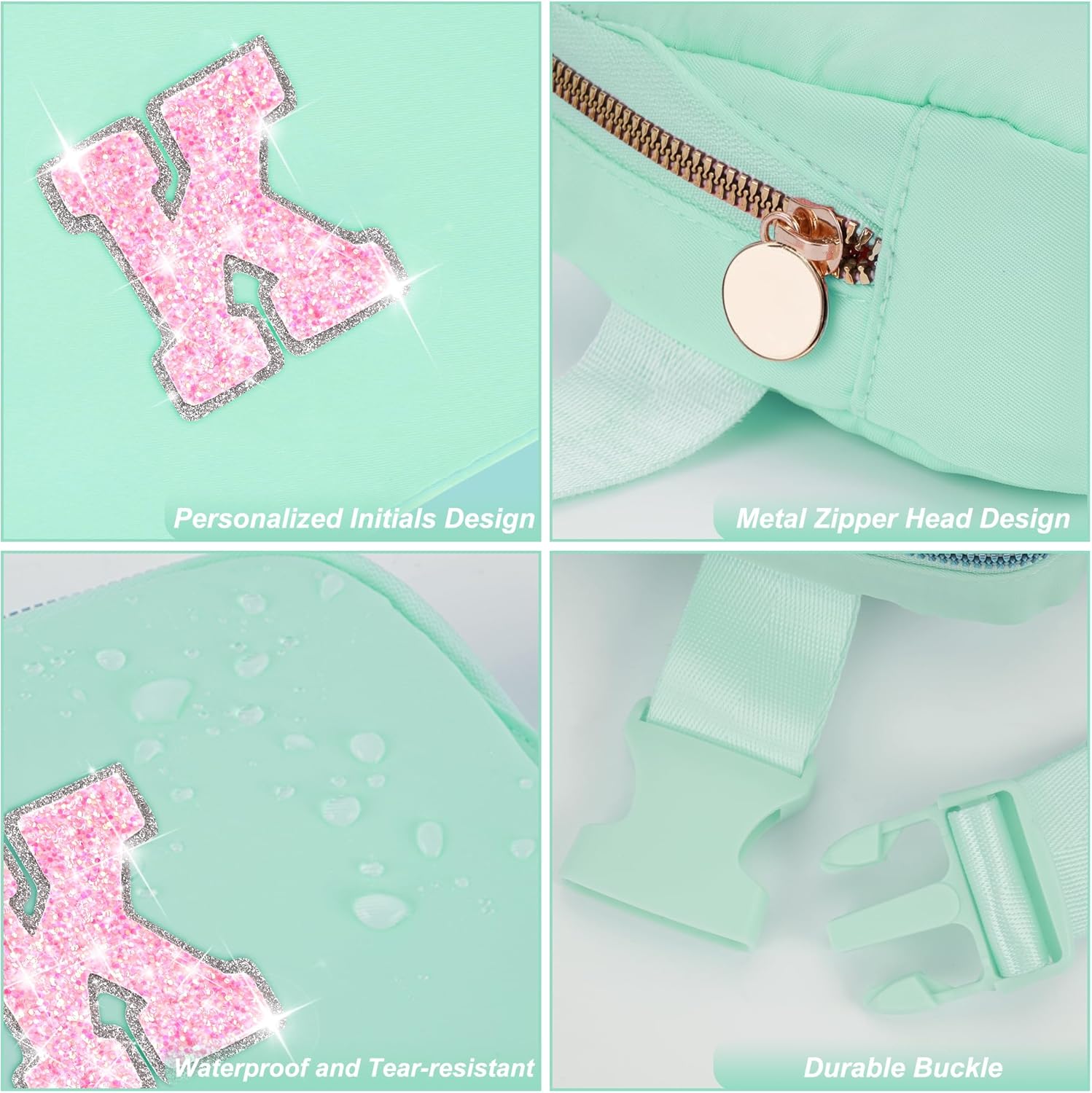 Fanny Pack Belt Bag Crossbody Bags with Initials Letter Patch Trendy Stuff for Teens Cute Stuff Birthday Gifts for Teenager Girls | Light Green,Initial K
