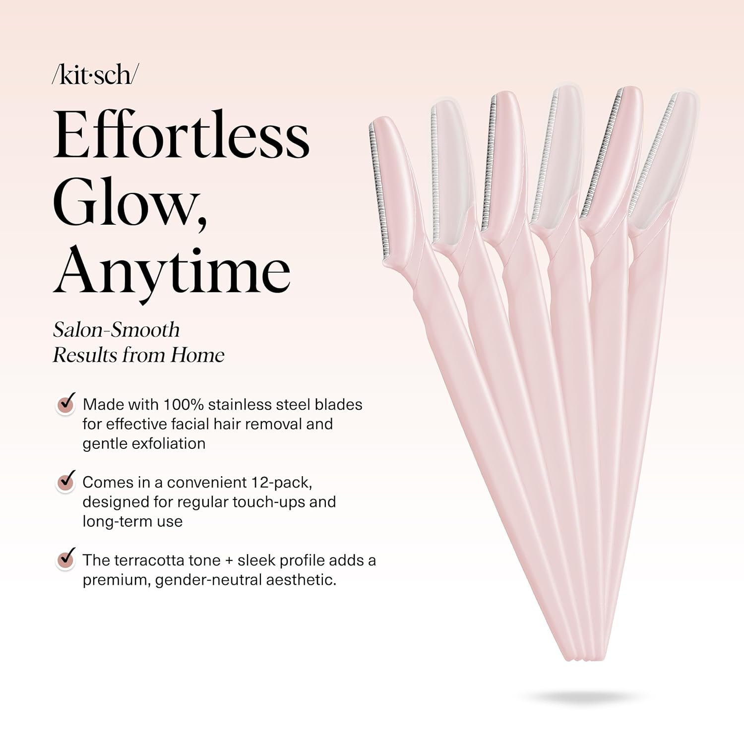 - GENTLE EXFOLIATION & FACIAL HAIR REMOVAL: Achieve smoother, glowing skin with the Kitsch dermaplane razor for women face. This facial razor gently removes dead skin cells, peach fuzz, and buildup, helping improve skin texture and reveal a fresher, brighter look.