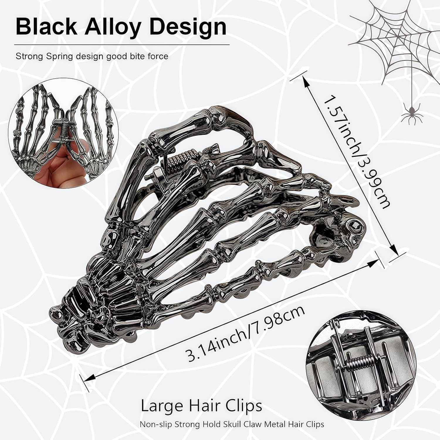 Black Skeleton Hand Hair Claw Clips-Metal Black Alloy Nonslip Terror Ghost Hand Strong Hold Hair Jaw Clips Punk Gothic Catch Thick or Thin Hairs Hair Accessories-Hand