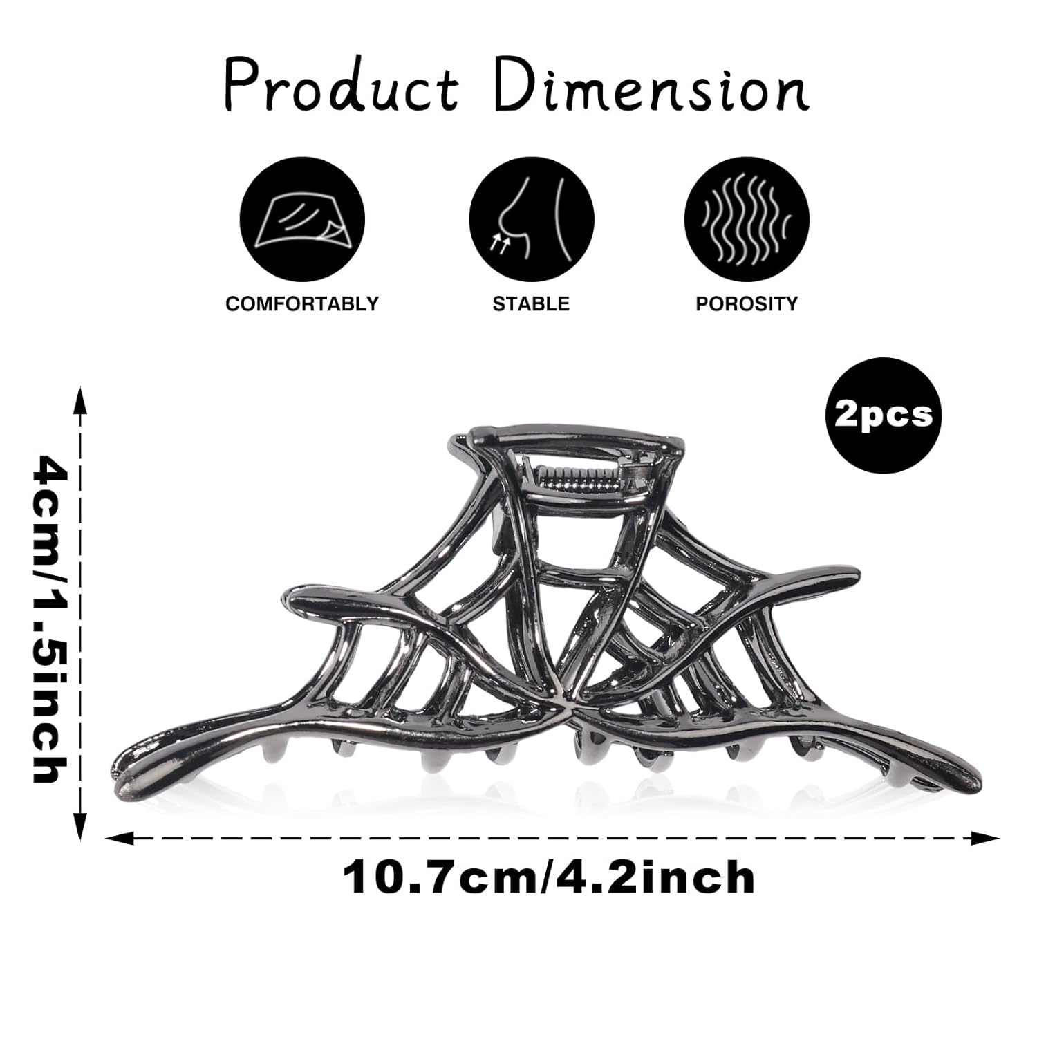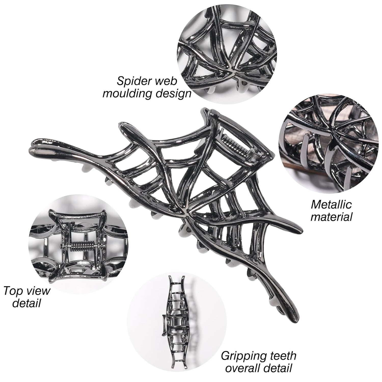 Halloween Spider Web Hair Claw Clips - Metal Black Alloy Nonslip Strong Hold Gothic Punk Catch Clips for Women's Thick or Thin Hairs