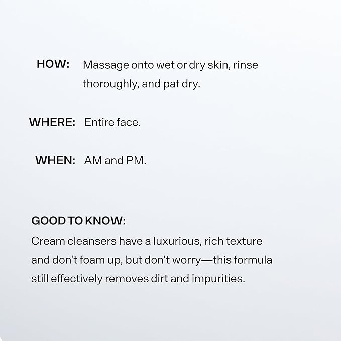 - Moisturize & Cleanse: The Versed gentle cream face cleanser removes dirt, oil, and impurities without drying out your skin, leaving your complexion feeling balanced, hydrated, and refreshed. The hydrating formula restores skin comfort and helps retain essential moisture.