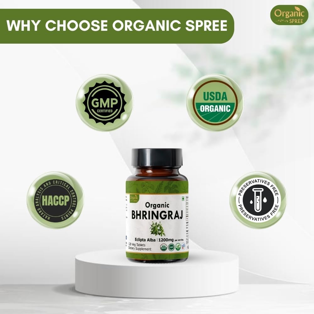 - Made with Goodness : Organic Spree Bhringraj Tablets are USDA Organic Certified, Vegetarian-friendly, and free from artificial colors, flavors, and preservatives. Enjoy the benefits of Organic BHRINGRAJ in every tablet.*