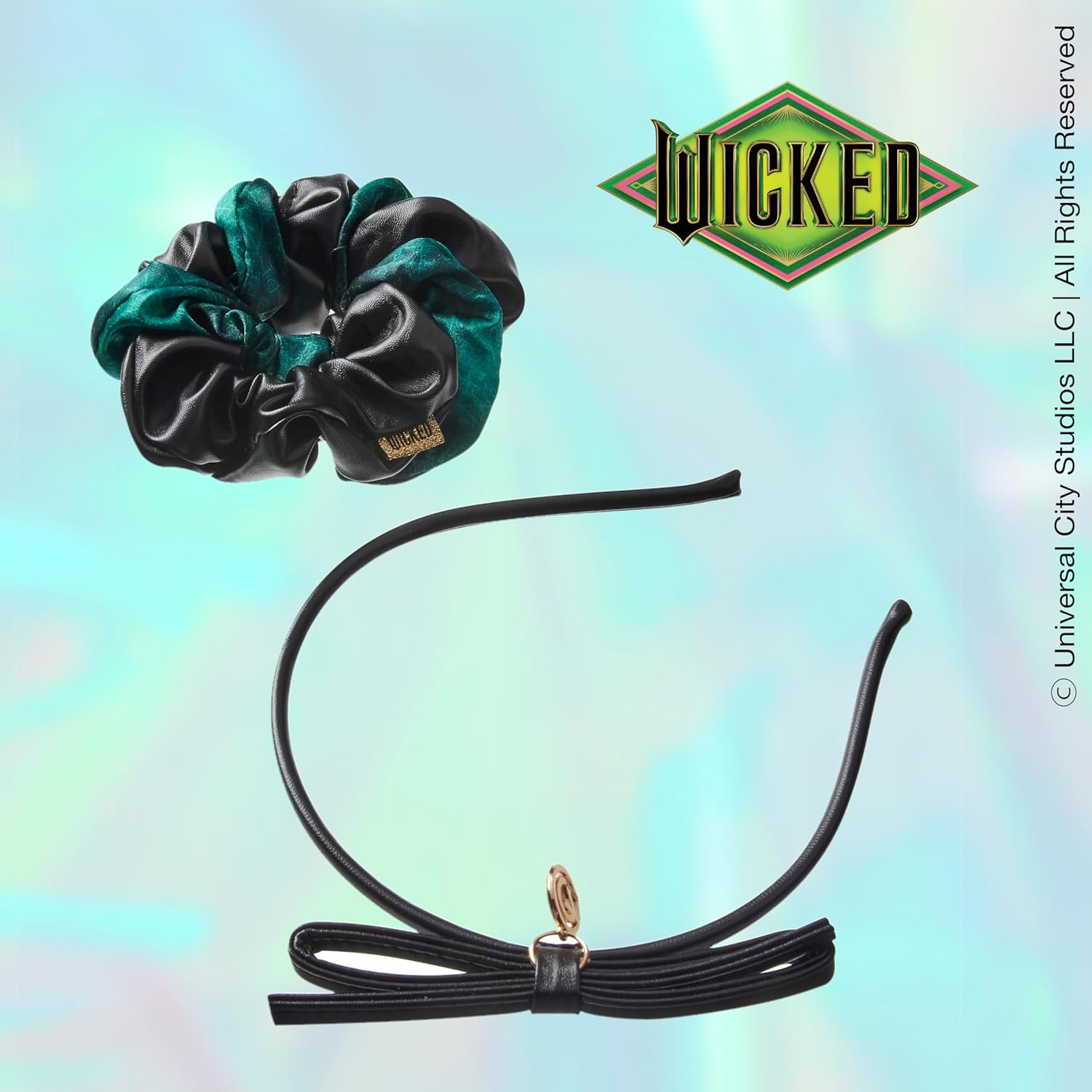 - Scrunchie with signature WICKED character print twisted with black faux leather