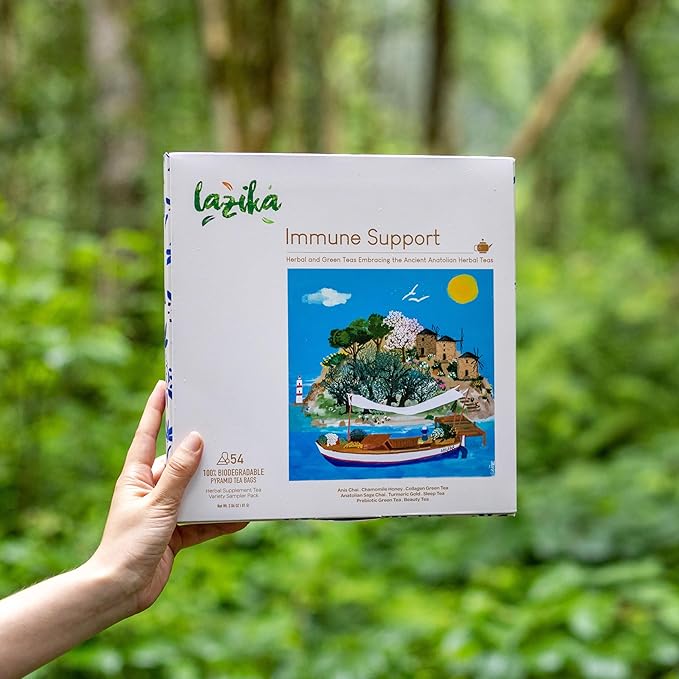 Lazika Herbal Tea Variety Pack with Lovely Presentation Box, 54 Counts, Immune Support Tea Assortment Gift Set, Premium Collection with Pyramid Infuser Bag, Handcrafted
