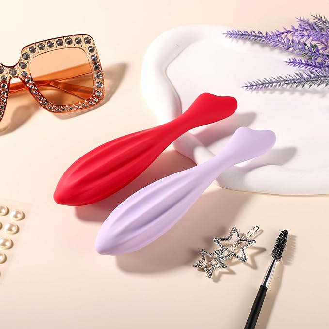 2pcs Facial Massage Rollers, Silicone Facial Roller Beauty Facial Skin Care Massage Tool Shapes Body & Face Curves Face Massage Stick for Women Body Face (Rose Red, Purple)
