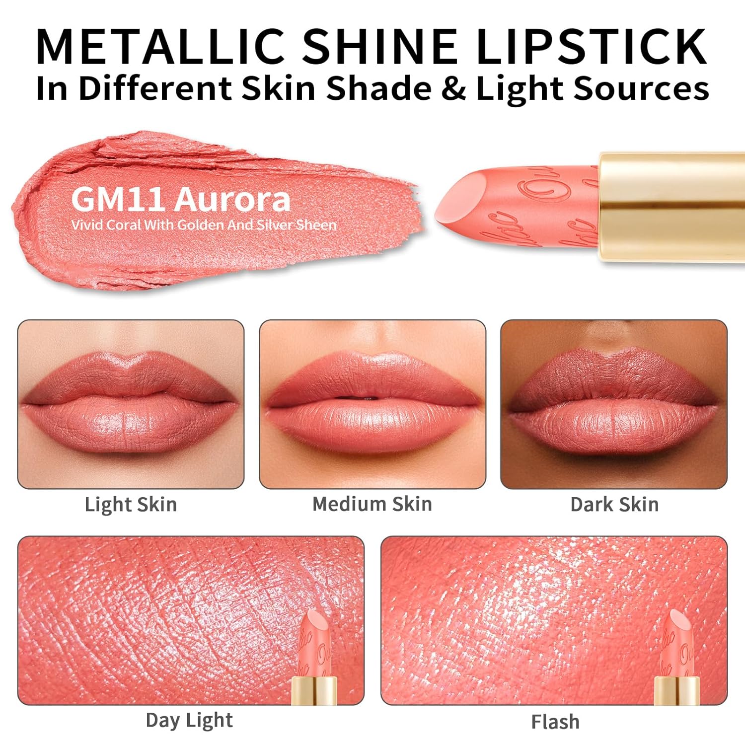 Oulac Matte Coral Lipstick with Glow Metallic Finish - Vegan Lipstick for Women, Creamy Texture, Hydrating Clean Beauty Formula, High-End Magnetic Hook Design, GM11 Aurora