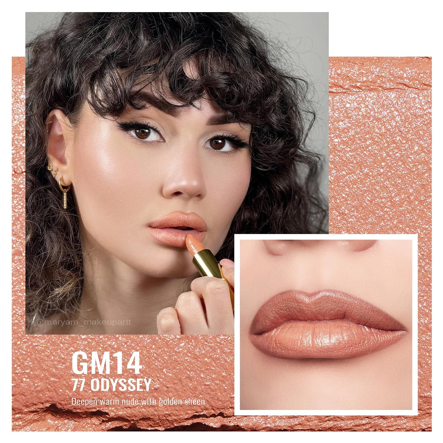 Oulac Matte Nude Lipstick with Glow Metallic Finish - Vegan Lipstick for Women, Creamy Texture, Hydrating Clean Beauty Formula, High-End Magnetic Hook Design, GM14