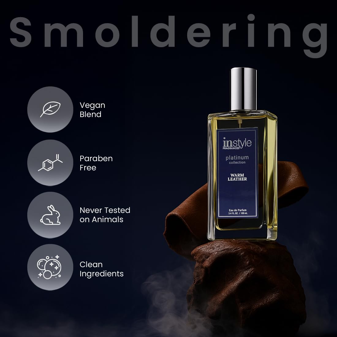 Instyle Fragrances Platinum Collection Warm Leather, Premium Unisex Eau de Parfum, CLEAN, Vegan, Paraben-Free, Never Tested on Animals, 3.4 Fluid Ounces