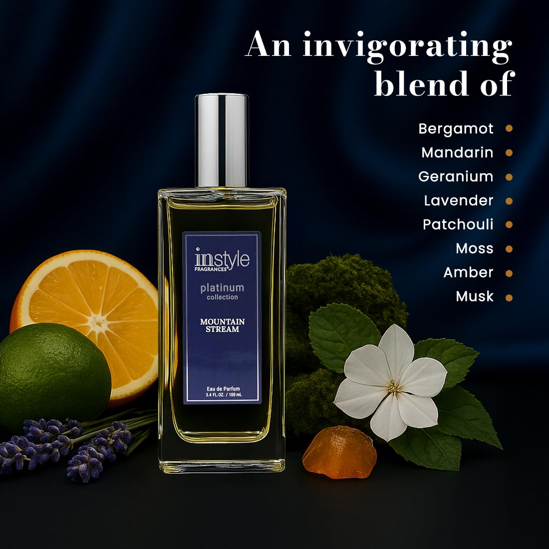 Instyle Fragrances Platinum Collection Mountain Stream, Premium Men’s Eau de Parfum, CLEAN, Vegan, Paraben-Free, Never Tested on Animals, 3.4 Fluid Ounces