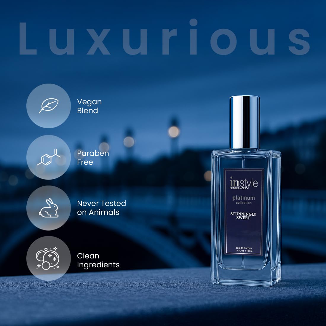 Instyle Fragrances Platinum Collection Stunningly Sweet, Premium Women’s Eau de Parfum, CLEAN, Vegan, Paraben-Free, Never Tested on Animals, 3.4 Fluid Ounces