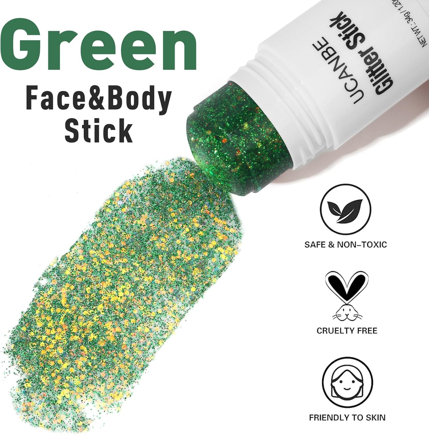 UCANBE Green Body Glitter Stick for Singer Concerts Music Festivals, Face Glitter Makeup for Face Body Hair Eyes & Lips, Chunky Glitter Sparkling Mermaid Sequins for Women 1.2OZ