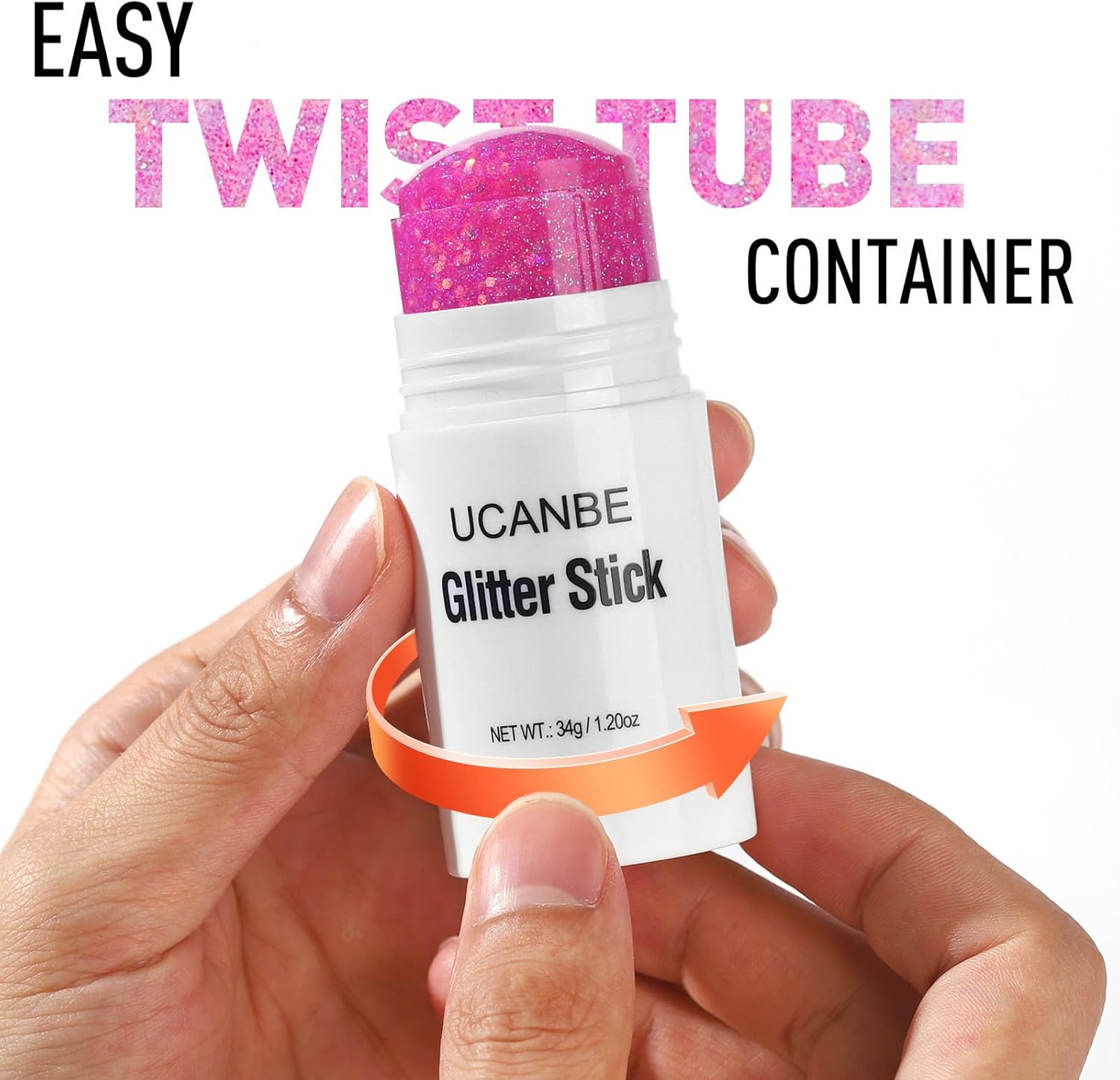UCANBE Pink Body Glitter Stick for Singer Concerts Music Festivals, Face Glitter Makeup for Face Body Hair Eyes & Lips, Chunky Glitter Sparkling Mermaid Sequins for Women 1.2OZ