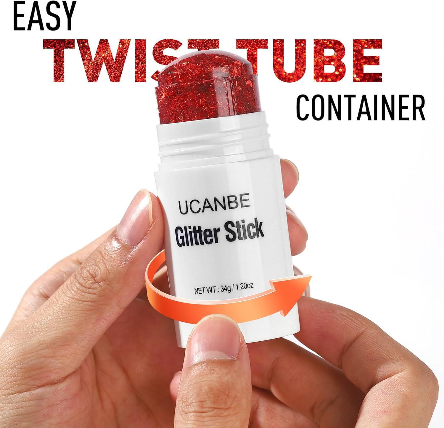 UCANBE Red Body Glitter Stick for Singer Concerts Music Festivals, Face Glitter Makeup for Face Body Hair Eyes & Lips, Chunky Glitter Sparkling Mermaid Sequins for Women 1.2OZ