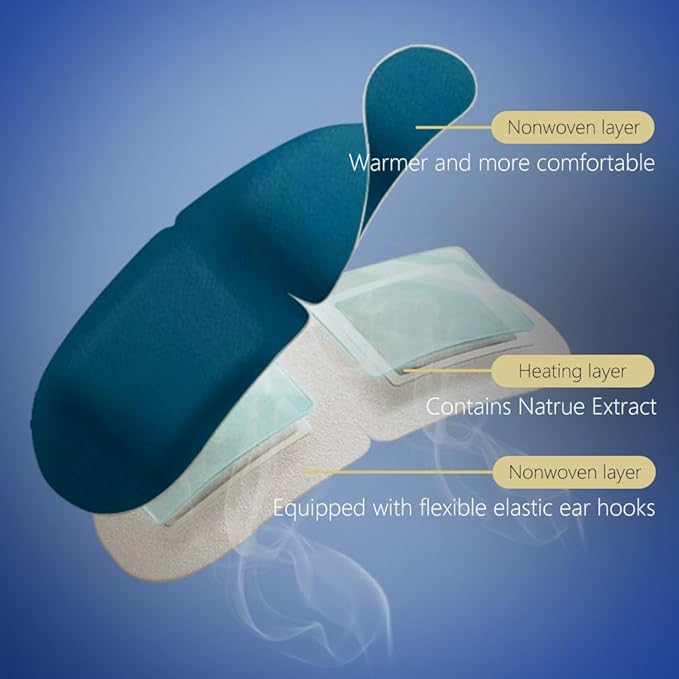 - Easy to use: The steam eye mask has flexible elastic ear hooks that are comfortable to wear and suitable for any face shape and posture, day or night, sleeping or simply taking a nap, anytime, anywhere - at home, in the office, while traveling, doing outdoor activities, or after a long day in front of the computer.
