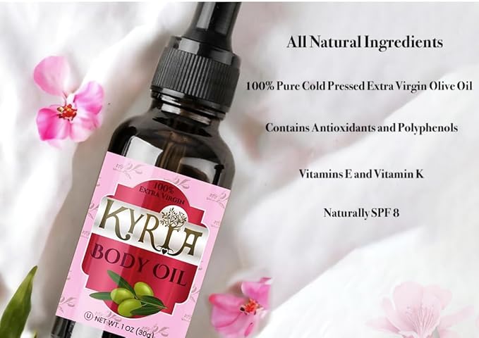 Kyria Greek Extra Virgin Olive Oil For Skin Care - Body Oil - Unrefined Cleansing Oil - Vitamin E - Face Moisturizer For Women - Active Skin Repair - 100% Pure cold pressed Greek Olive Oil - 2 FL OZ
