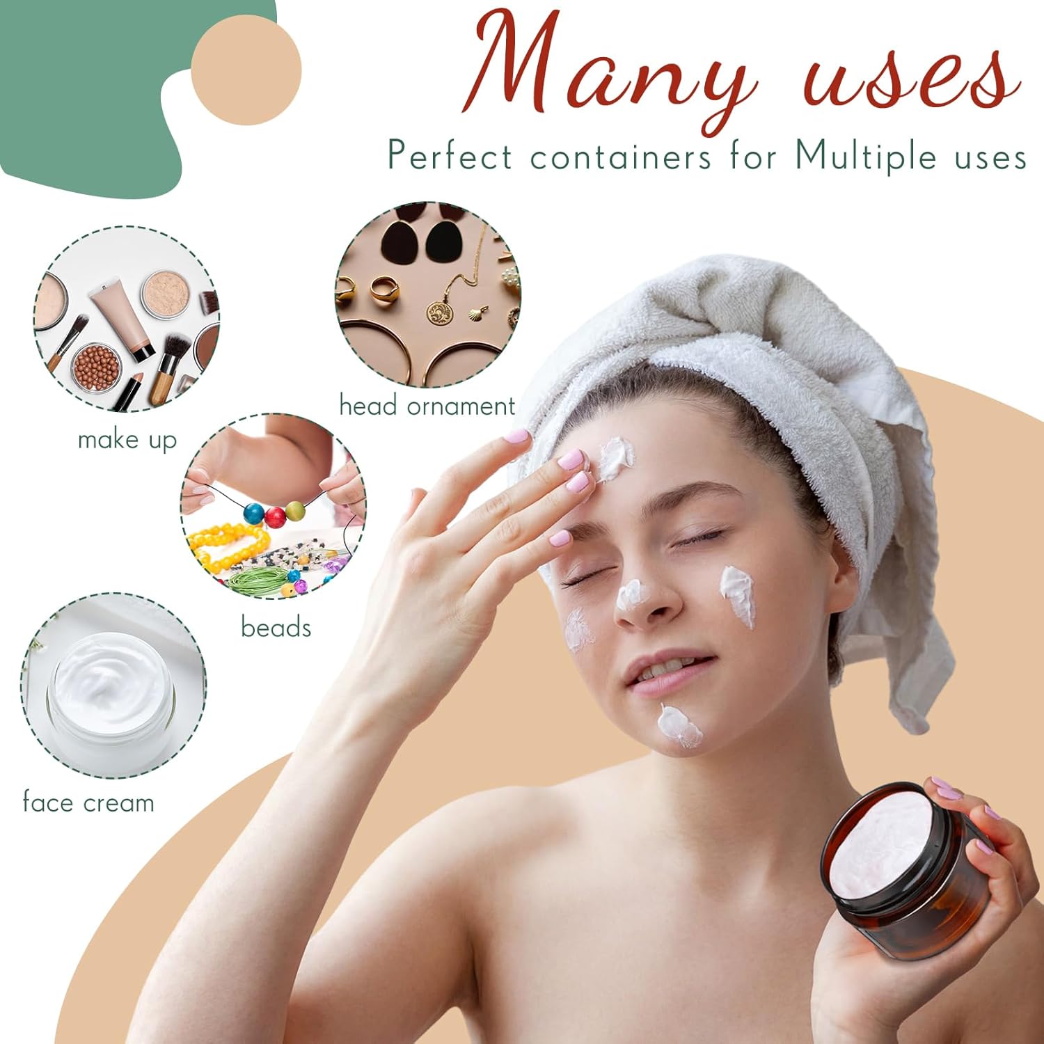 - Multifunctional Containers: you can use these plastic jar containers with lids to store your personal beauty products for travel, ideal to dispense; You can also use it to store homemade sugar scrub cream, body lotions, bath butter soap gifts, body butters and hair moisturizers, small and easily lost jewelry, small crafts like beads, seasonings, acrylic paints, flower seeds, rhinestones etc., which will keep your things organized and make your life more convenient