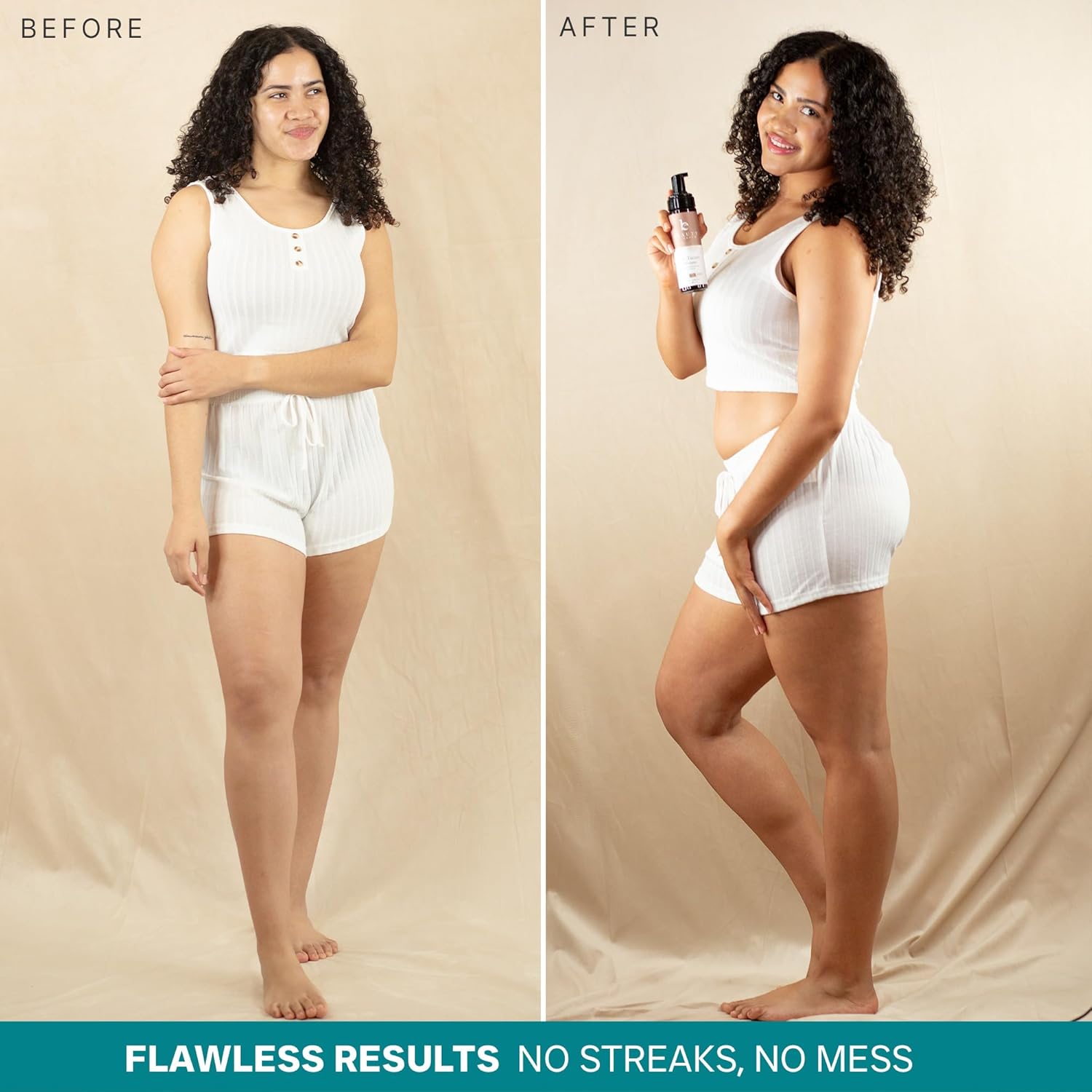 - QUICK TAN MOUSSE: The clean self tanning foam absorbs quickly and delivers a 𝐧𝐚𝐭𝐮𝐫𝐚𝐥 𝐛𝐫𝐨𝐧𝐳𝐞 𝐜𝐨𝐥𝐨𝐫 in just a few hours. Our quick-drying formula won’t transfer or stain clothes or sheets!