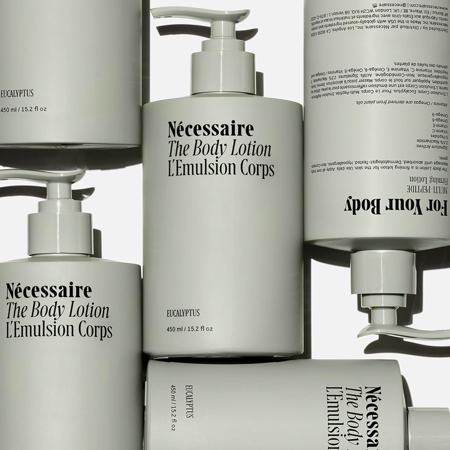 Nécessaire The Body Lotion Eucalyptus – Multi-Peptide Body Moisturizer for Women + Men – Non-Comedogenic Body Lotion with Niacinamide – 450ml/15.2 fl oz