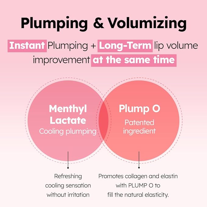 - ๐Cooling sensation - Menthyl Lactate, which provides a refreshing cooling sensation, promotes blood circulation in the lips. Resulting in a fuller volume without irritation.