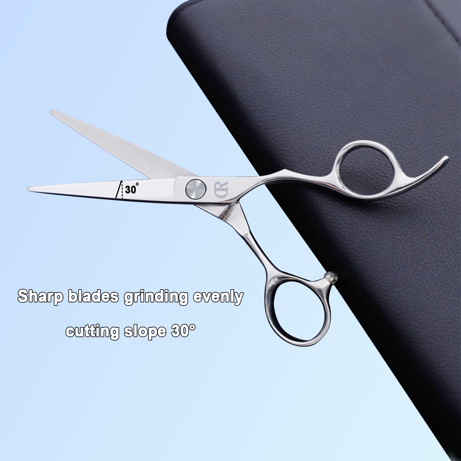 - Our Japanese stainless steel Hair Cutting scissor is tempered with precise blades and hand-sharpened razor cutting edges.We strictly control the weight of the scissors to only 2.11-2.2 ounces. Even if you hold and cut your hair for a long time, it won't make your hands feel tired. At the same time, we have increased the inner diameter size of the ring, so that your fingers can easily reach into the ring without any binding feeling!