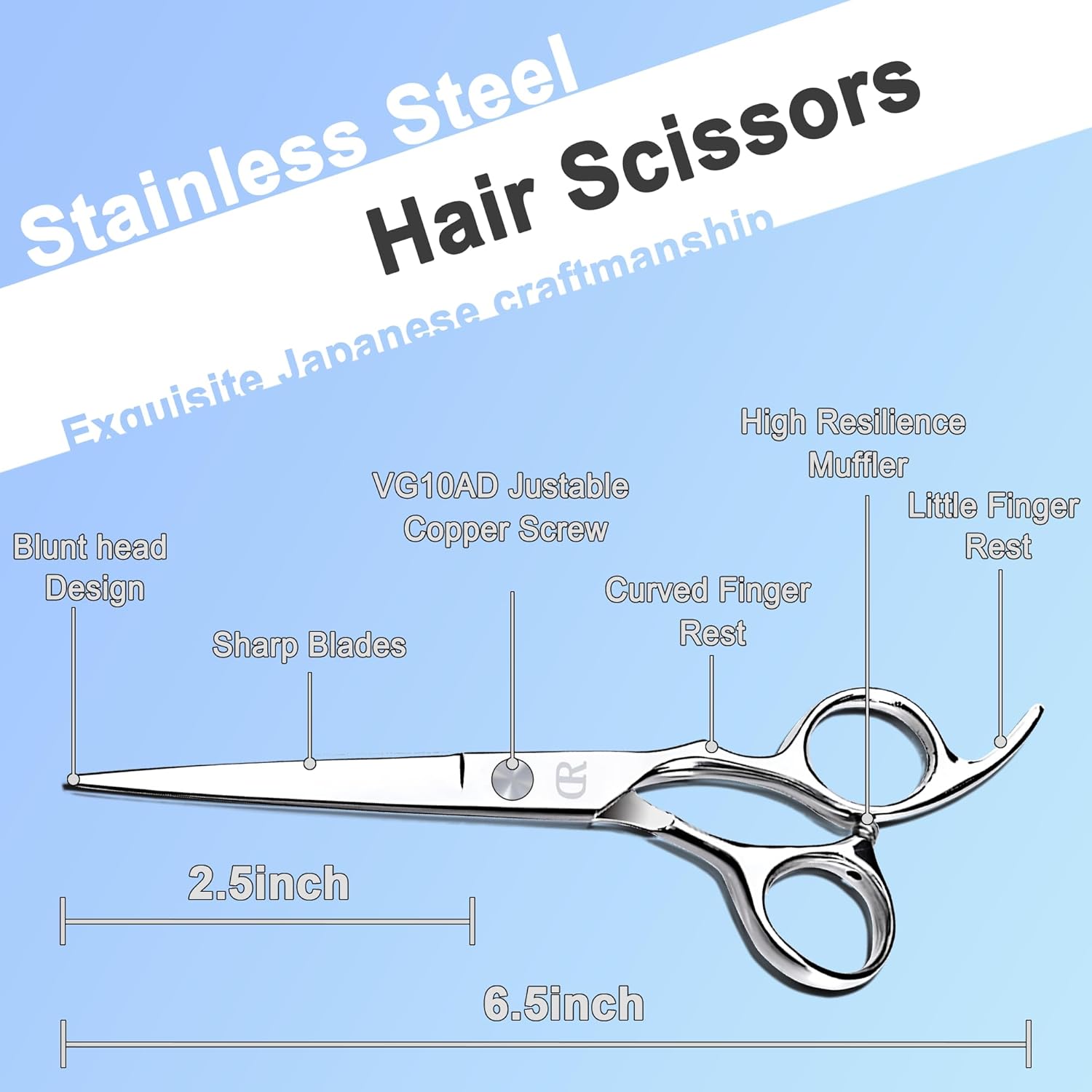 Professional Hair Cutting Shears,6 Inch Barber hair Cutting Scissors Sharp Blades Hairdresser Haircut For Women/Men/kids 420c Stainless Steel (Silver)