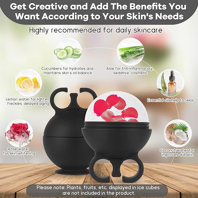 - HIGH QUALITY & MONEY SAVING: Ice roller for face made of high-quality silicone material, Reusable, durable, BPA free, face massager tool is made of food grade silicone. Pack of 2 for alternate use, which can save you money. DIY beauty recipes according to skin needs, lemon water whitening, green tea anti-inflammatory, cucumber water reduces swelling, mint leaves refreshing, coconut juice improves skin, have a spa experience at home. ice face roller ice globes for face ice for face ice facial