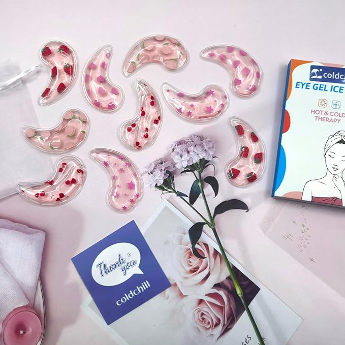 Reusable Gel Eye Ice Pack, Cooling Eye Pad, Hot & Cold Treatment for Eye Strain, Eye Swelling, Eye Redness, Puffy Eyes, Dark Circles, Smooth Fine Lines, and Eye Recover Surgery. (Pink & 10PCS)