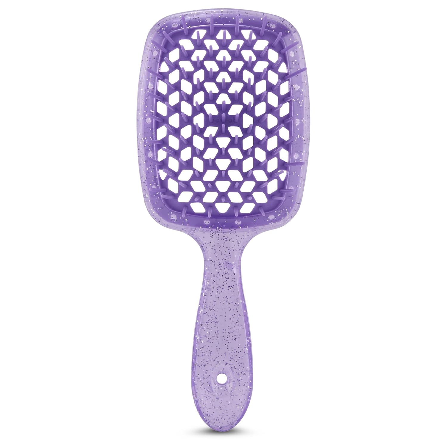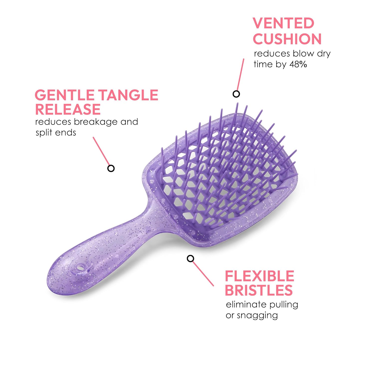 Detangling Brush for All Wet or Dry Hair Types - Pain-Free Brushing, Vented Hair Brush - Lightweight Handle with Extreme Flex to Contour to Scalp (Purple Glitter)